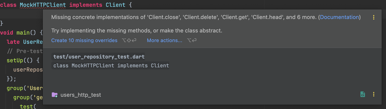 For now we will be using the Mocktail from pub.dev as we can pass in a mock client.